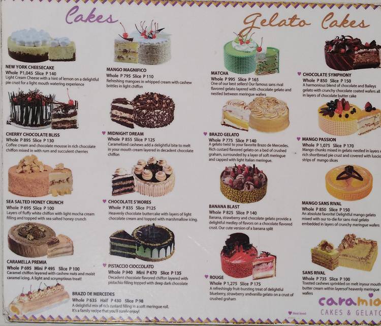 Cara Mia Cakes Gelato Menu Sm Megamall Mandaluyong Booky